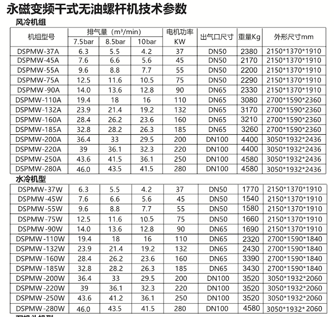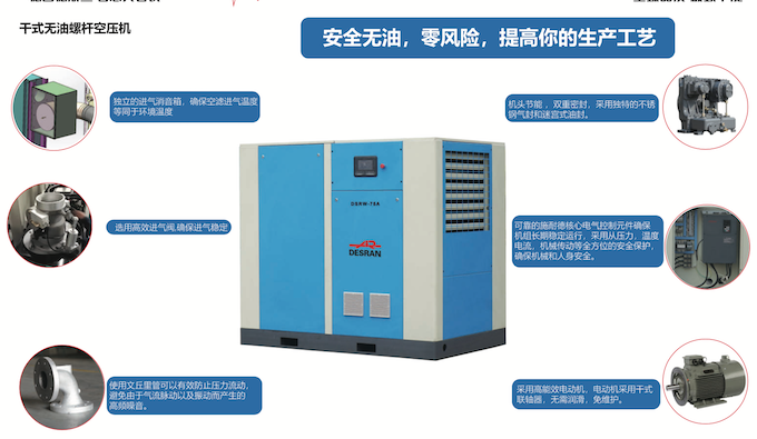 ² 易损件少,运行费用低,全新的无油螺杆系统设计使运行过程中基本无润滑油损耗,适用于长时间连续运转